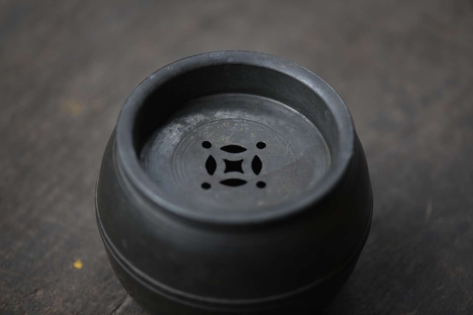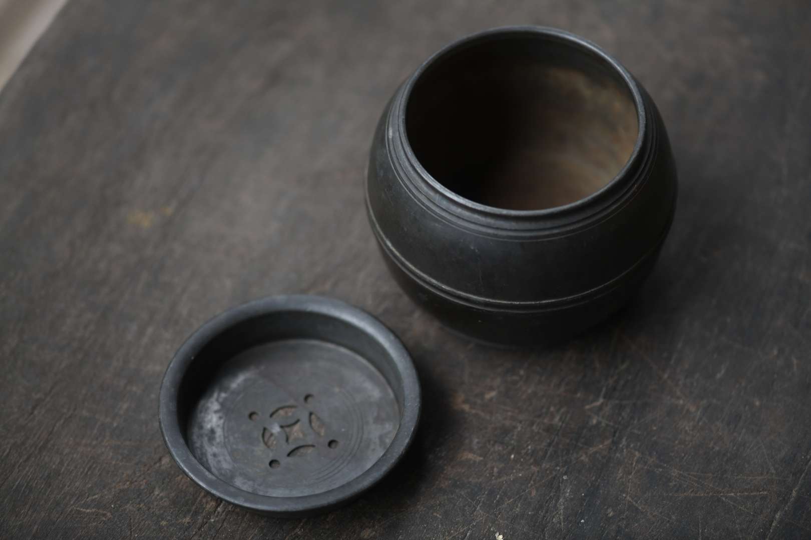煎茶道具 茶こぼし 錫製 322㌘高:8cm 直径:10cm 口径:7cm {ID163}