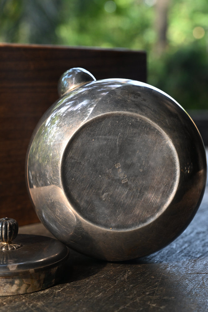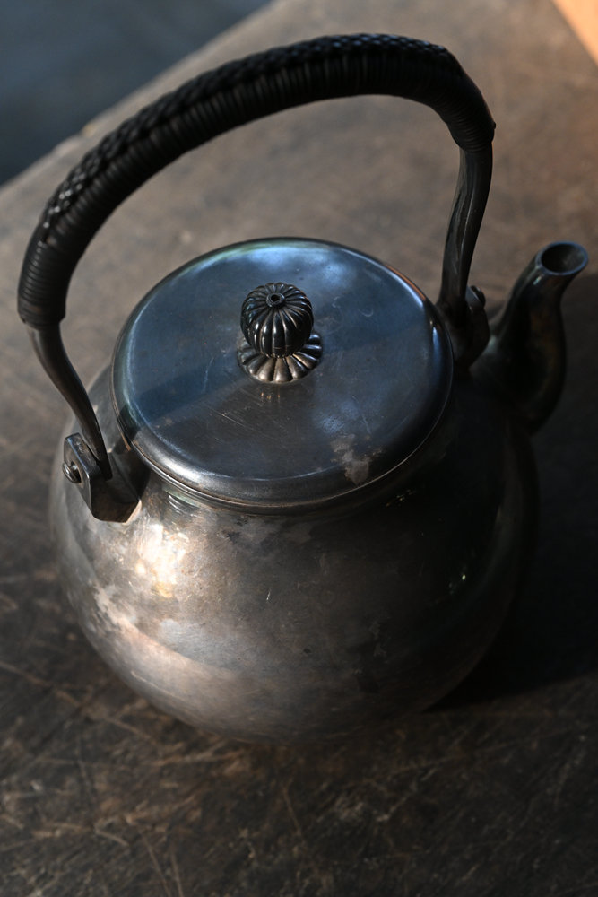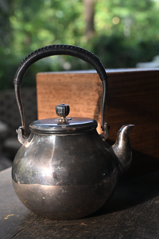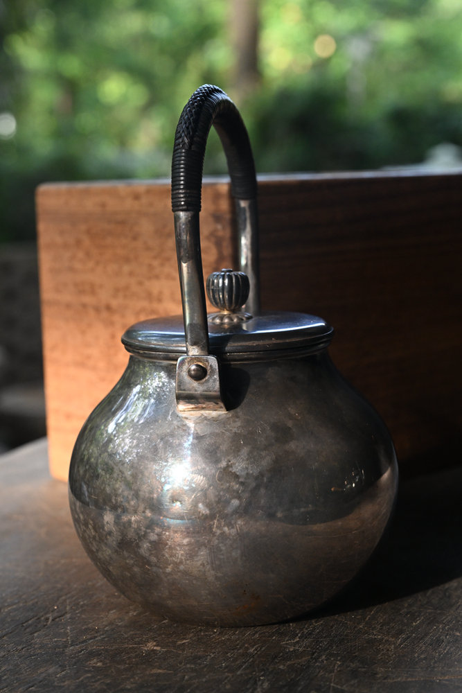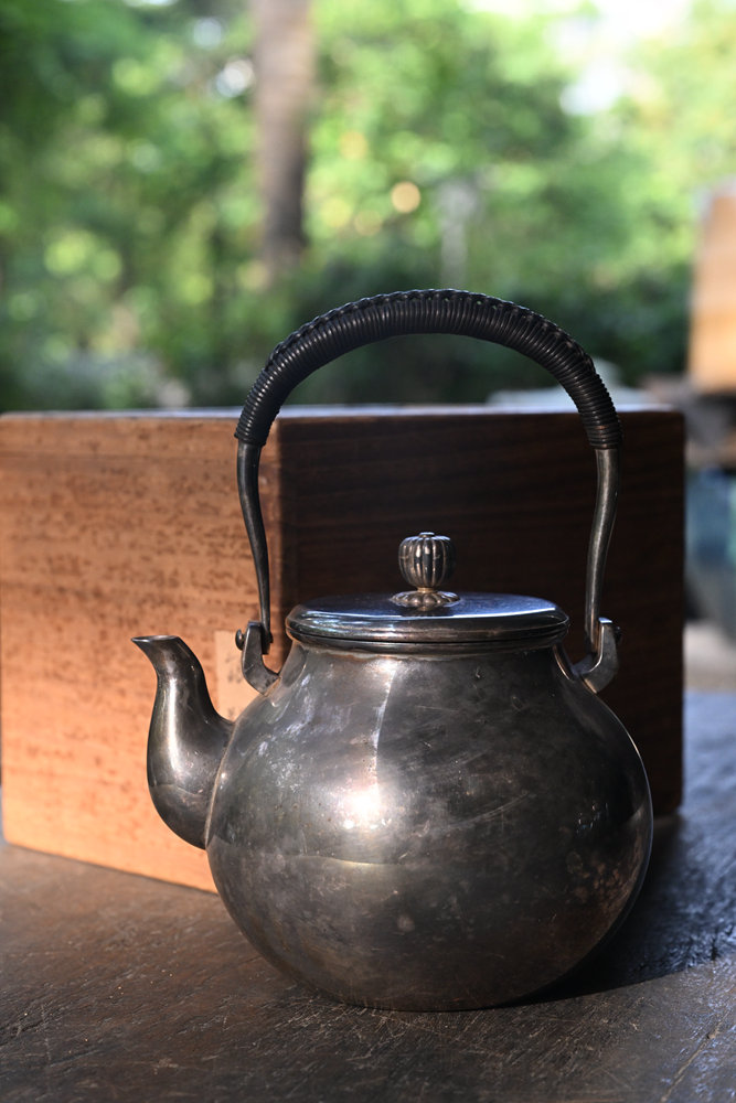 日本老银壶 纯银制 羽田造 鹤首 日本名金工师 状况良好,包浆自然 老保存箱